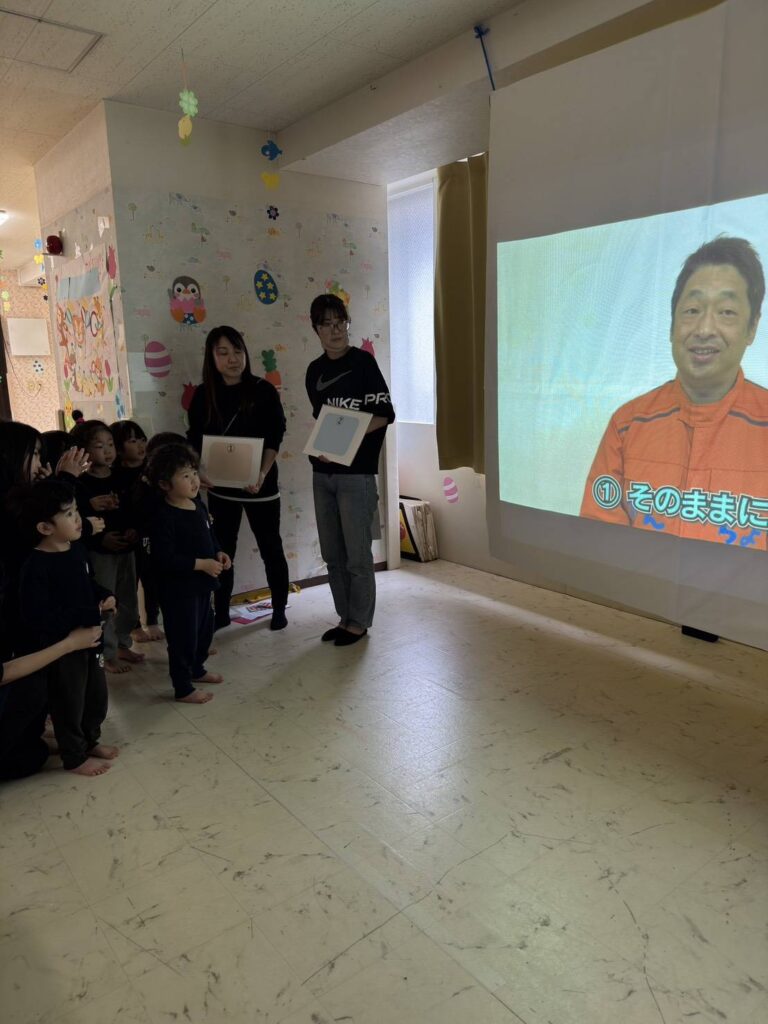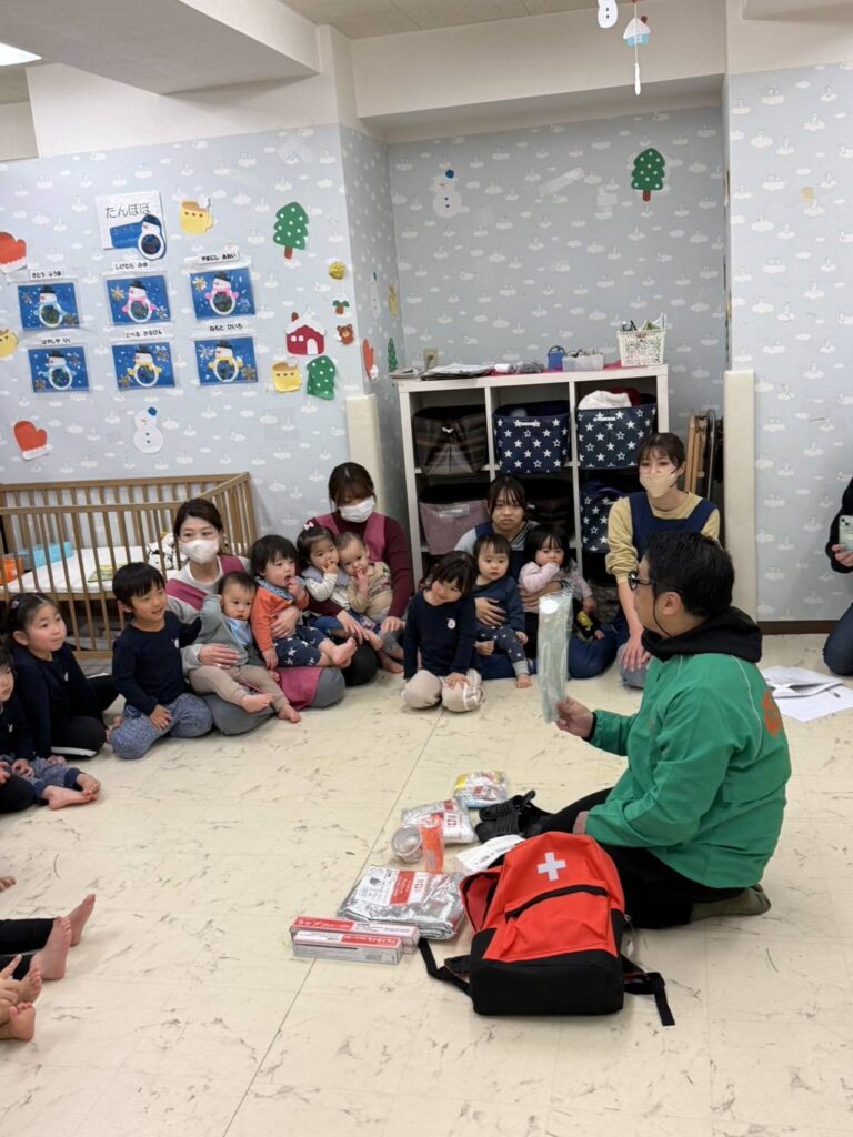また、フィードバックとして、園で防災体験をしました。