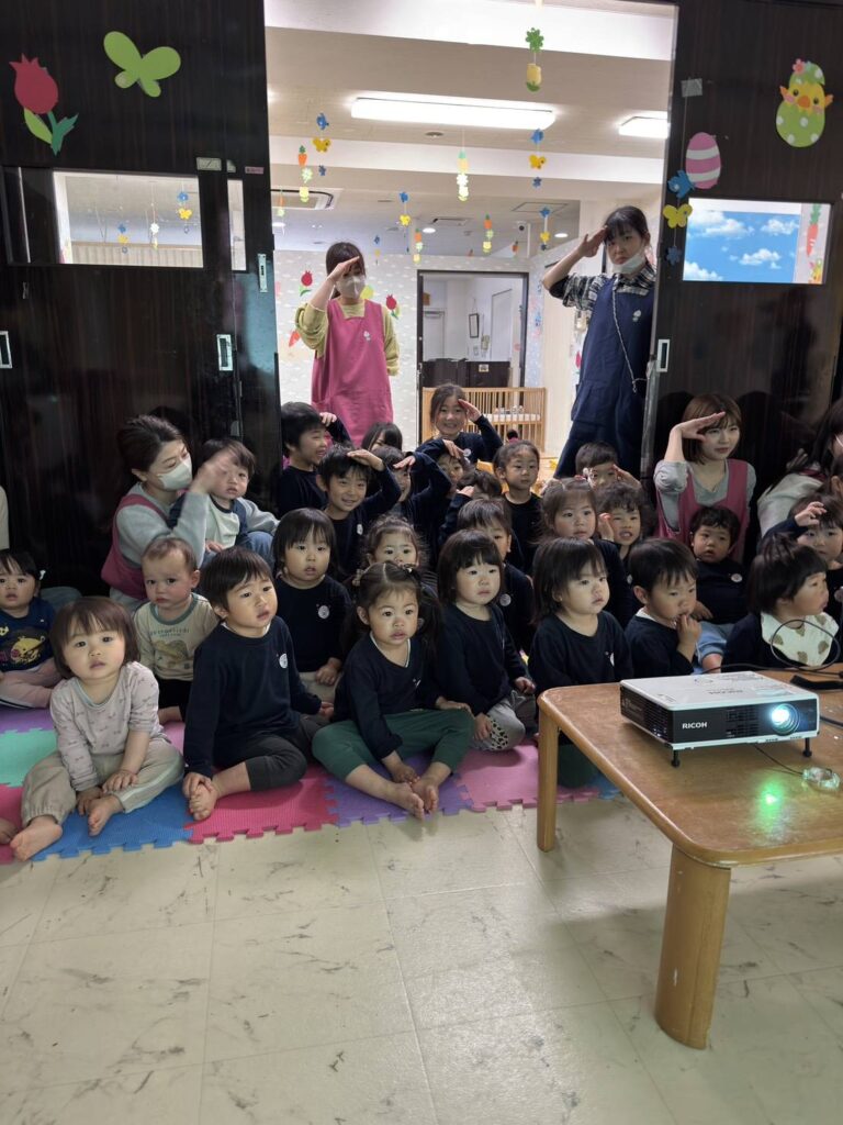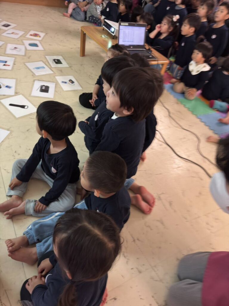 ユーモアを交えながら分かりやすく伝えてくださるお話に、会場は笑いに包まれつつも、子ども達は自分たちの煙体験を思い出しながら真剣そのもの。「あの時、前が見えなかったね」「低くなったよね」と、体験と結びつけながら一生懸命に耳を傾けていました。