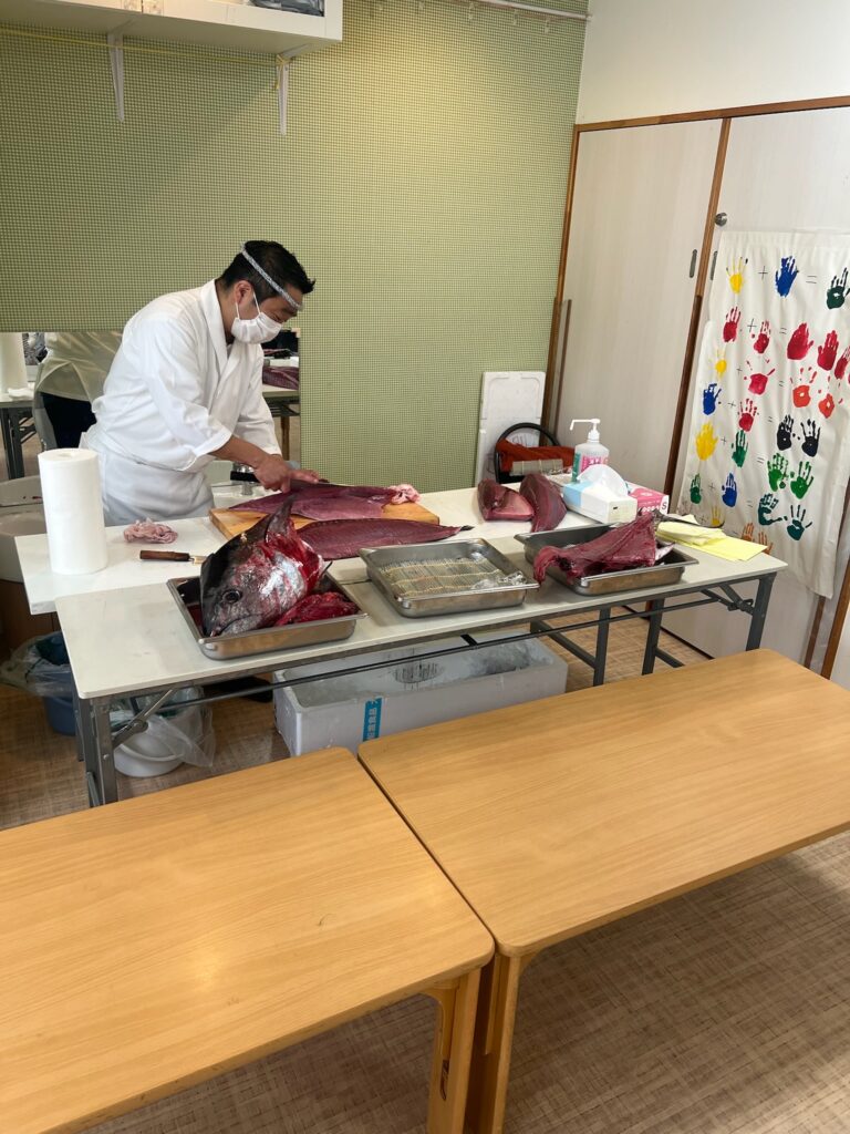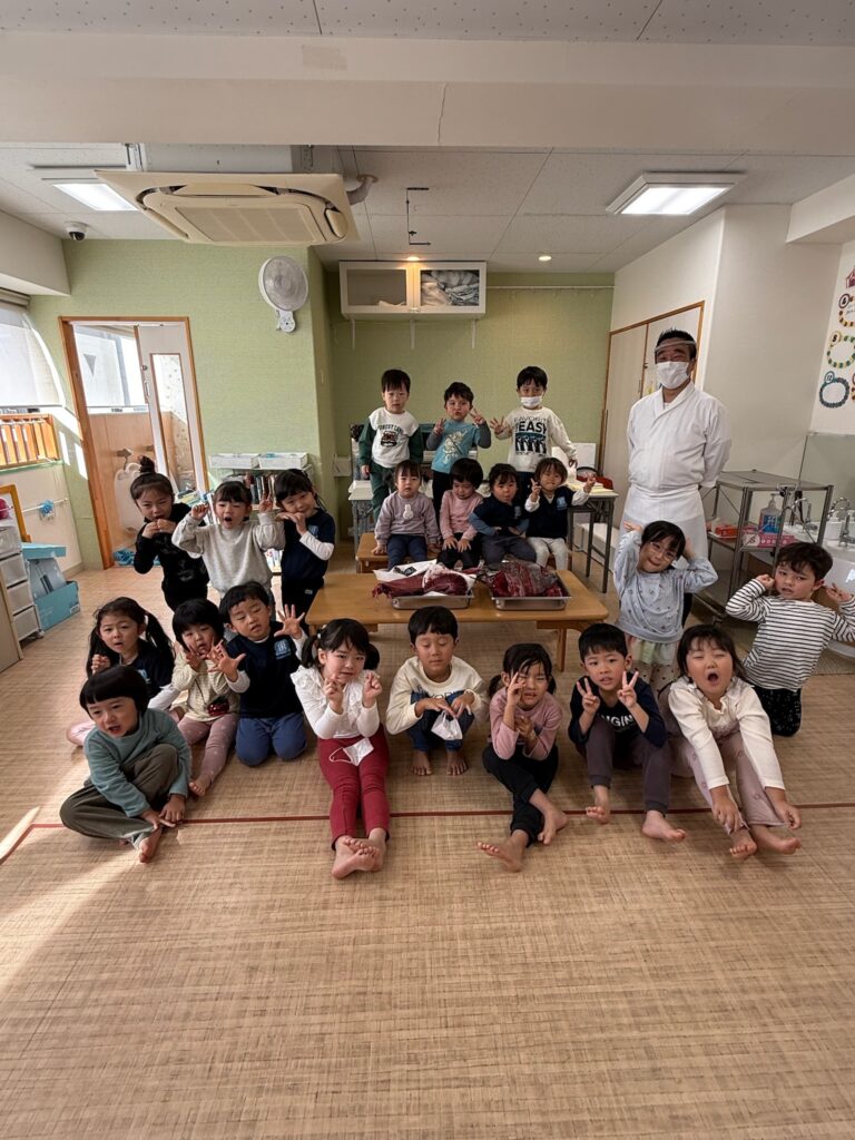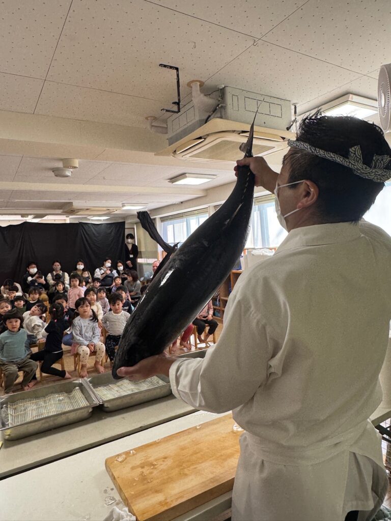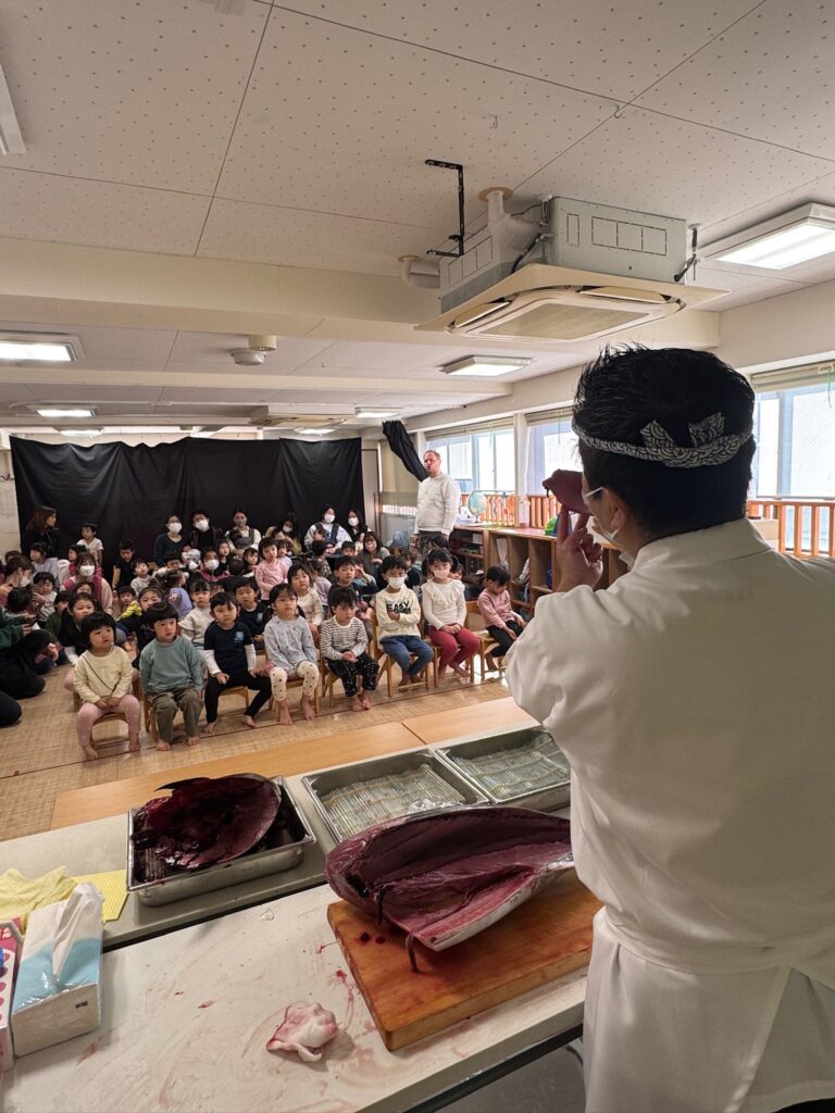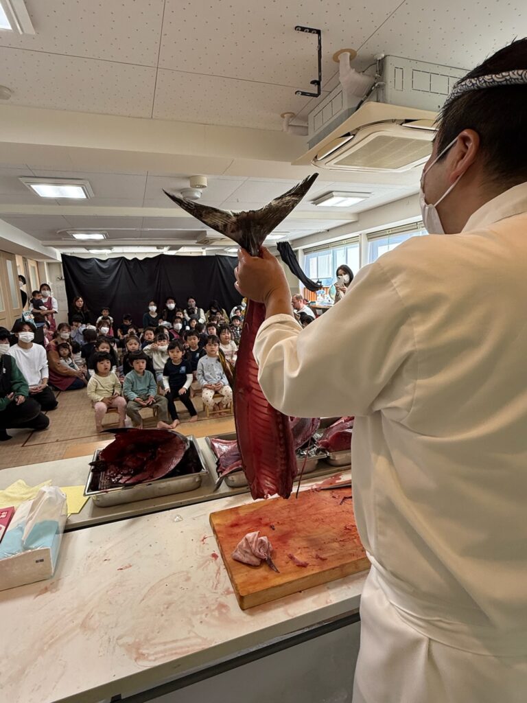 2025年11月18日、BunBu学院Jr.中目黒園において、以前よりご協力いただいている「マグロ解体師」でもある、卒園児の保護者様にお願いし、鮪の解体ショーを実演していただきました🐟